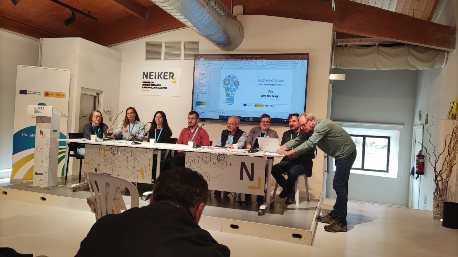 También se presentaron dos proyectos en los que participa el centro Neiker. El primero, de cultivos alternativos, frutales de cáscara, que investiga la viabilidad de nogales, avellanos y almendros como cultivos alternativos; en colaboración con agricultores locales, aporta conocimiento clave para diversificar la agricultura frente a retos como heladas, plagas o sequías.  Se visitó una finca experimental de cultivo de nueces y las instalaciones de los Hermanos Torre en Ribavellosa, donde se ha mostrado la viabilidad técnica del cultivo de este fruto seco. Y el segundo, el Grupo Operativo LARRESNE, para testar una herramienta digital de control de la alimentación de ganado vacuno y ovino para la certificación de leche de pasto, con visita a una explotación ganadera.